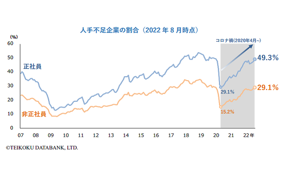 人手不足状態の企業は49.3%、正規・非正規ともにコロナ禍で最高【帝国データバンク調べ】